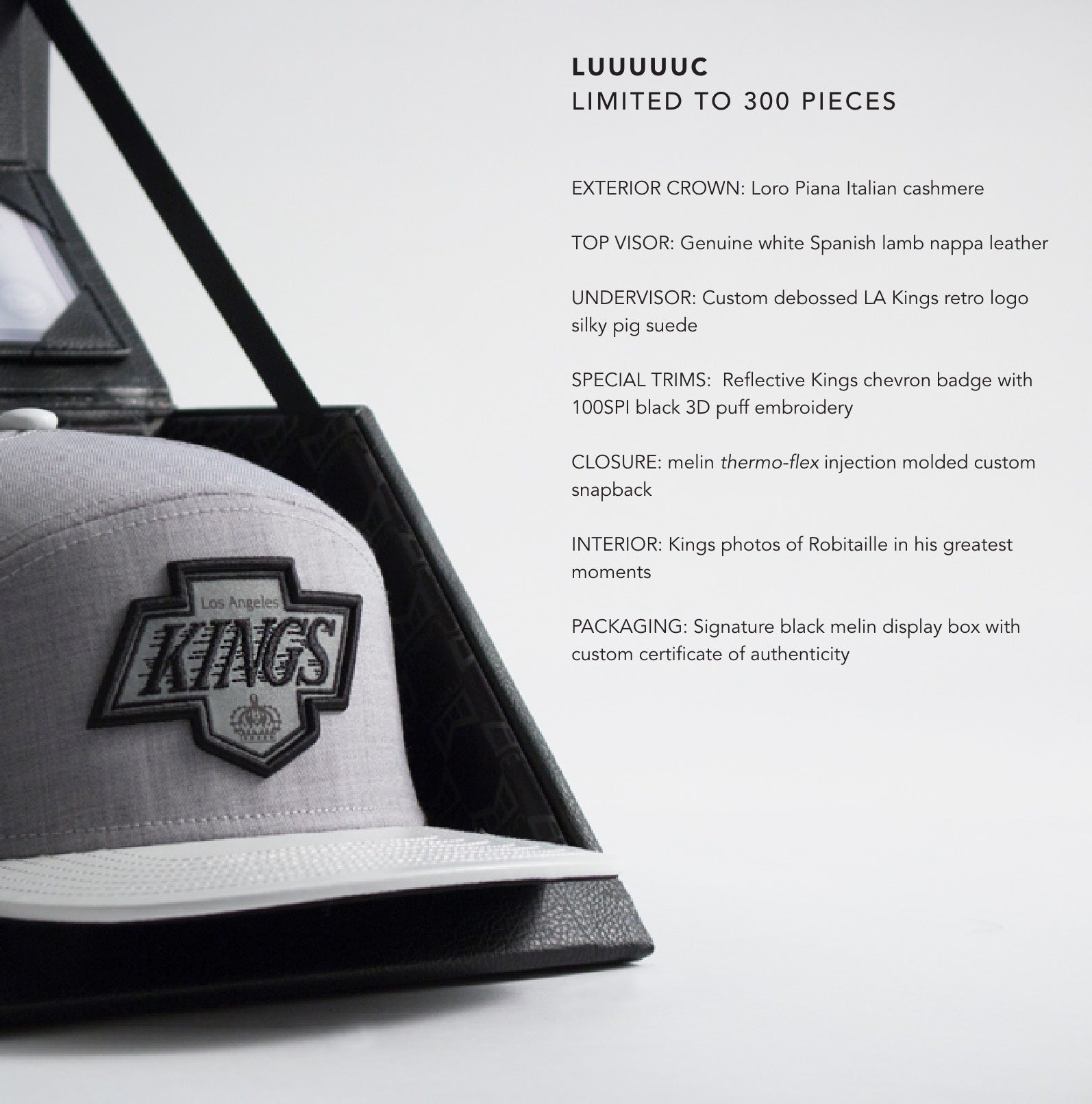 Luc Robitaille, President of Business Operations for the Los Angeles Kings said; “We are very happy to celebrate our 50th anniversary with a capsule of great hats from melin.”